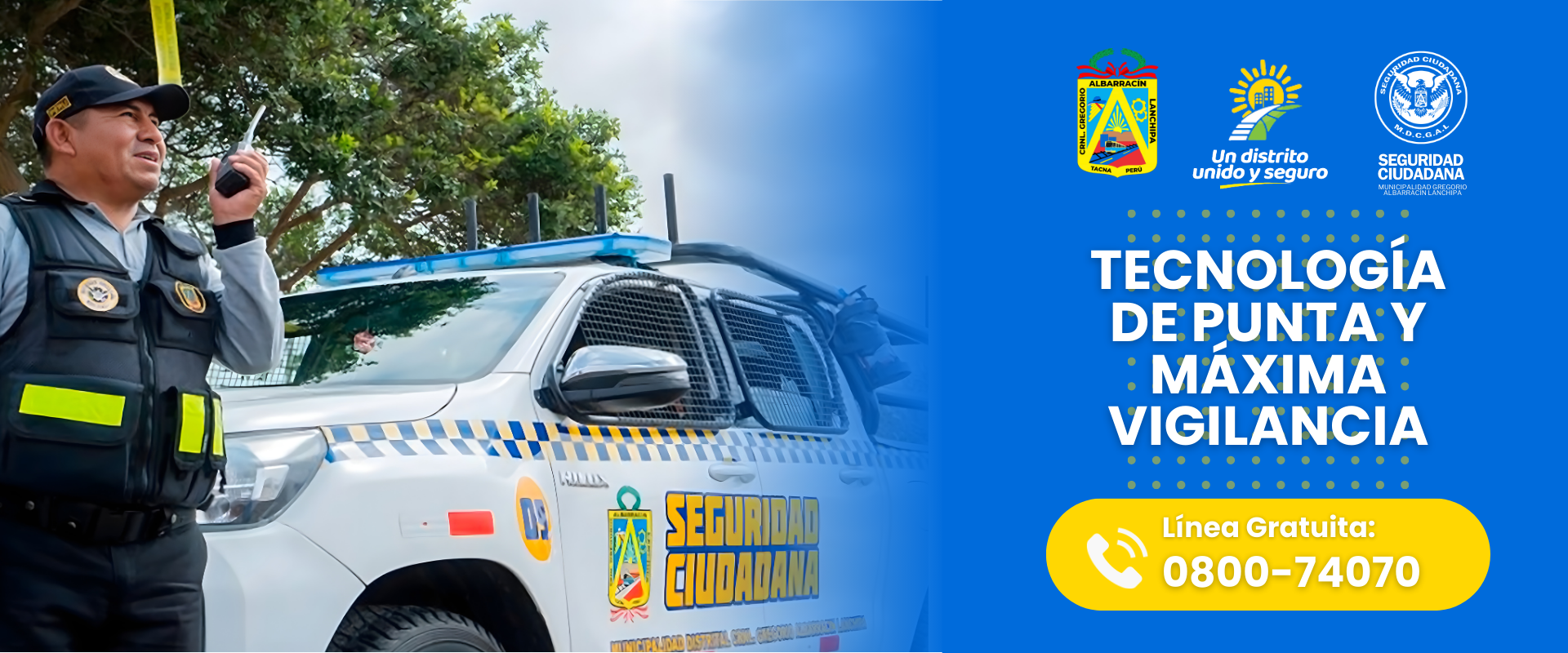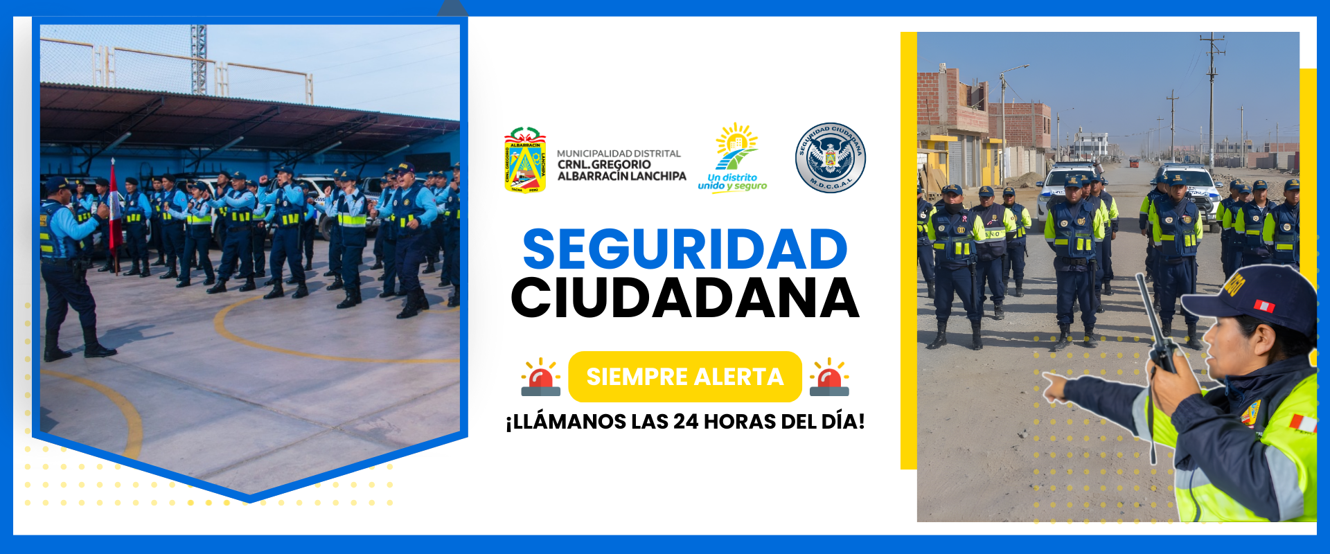 La Dirección de Seguridad Ciudadana planifica, organiza y ejecuta con los medios disponibles, acciones de prevención, vigilancia, protección y seguridad permanentes del Distrito en apoyo de la Policía Nacional y Defensa Civil con la finalidad de controlar, neutralizar y/o eliminar los riesgos que atentan contra los bienes patrimoniales, la paz y tranquilidad de los vecinos del Distrito; es por eso que la Municipalidad ha creado y viene fomentando el programa de «Albarracino Vigilante».